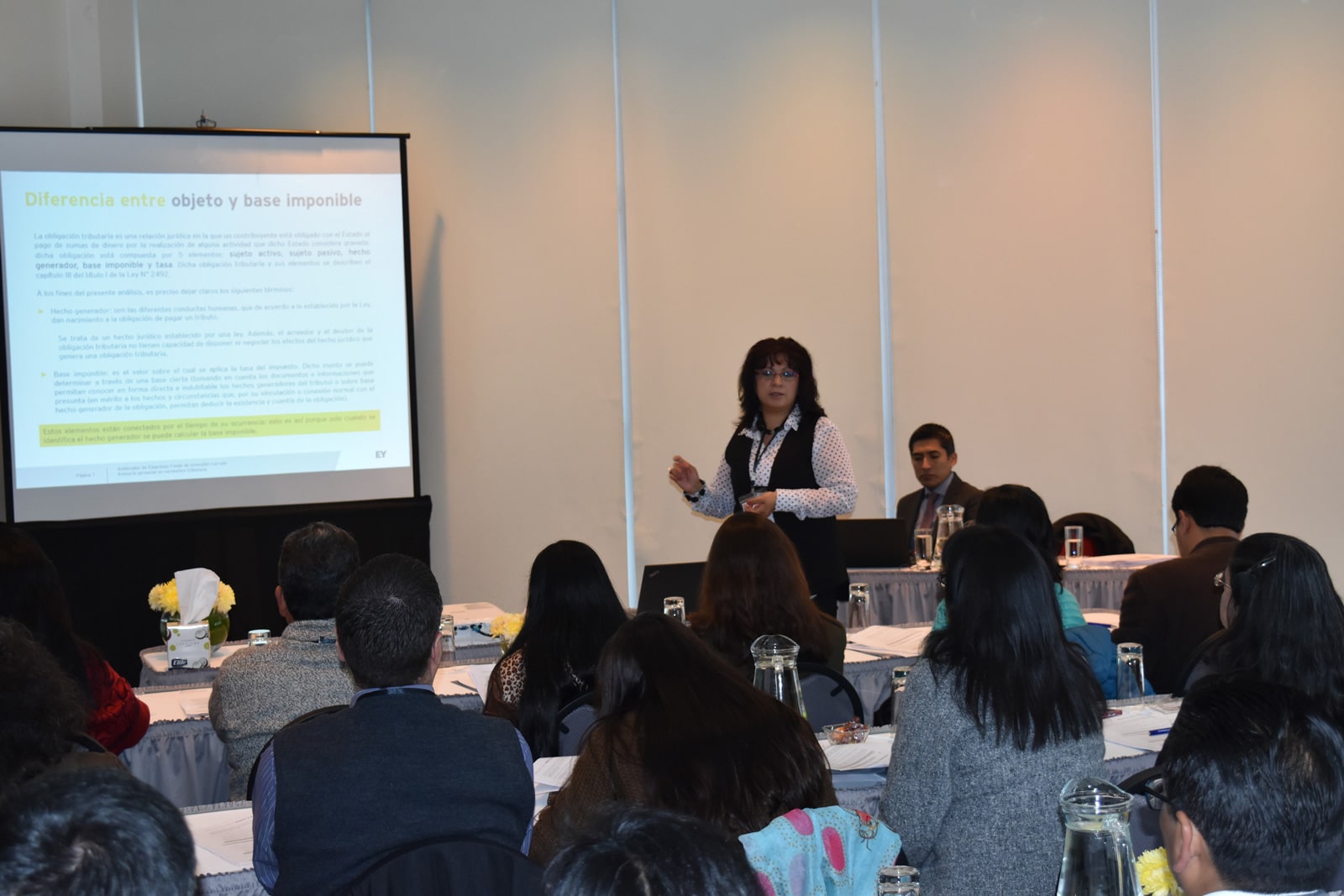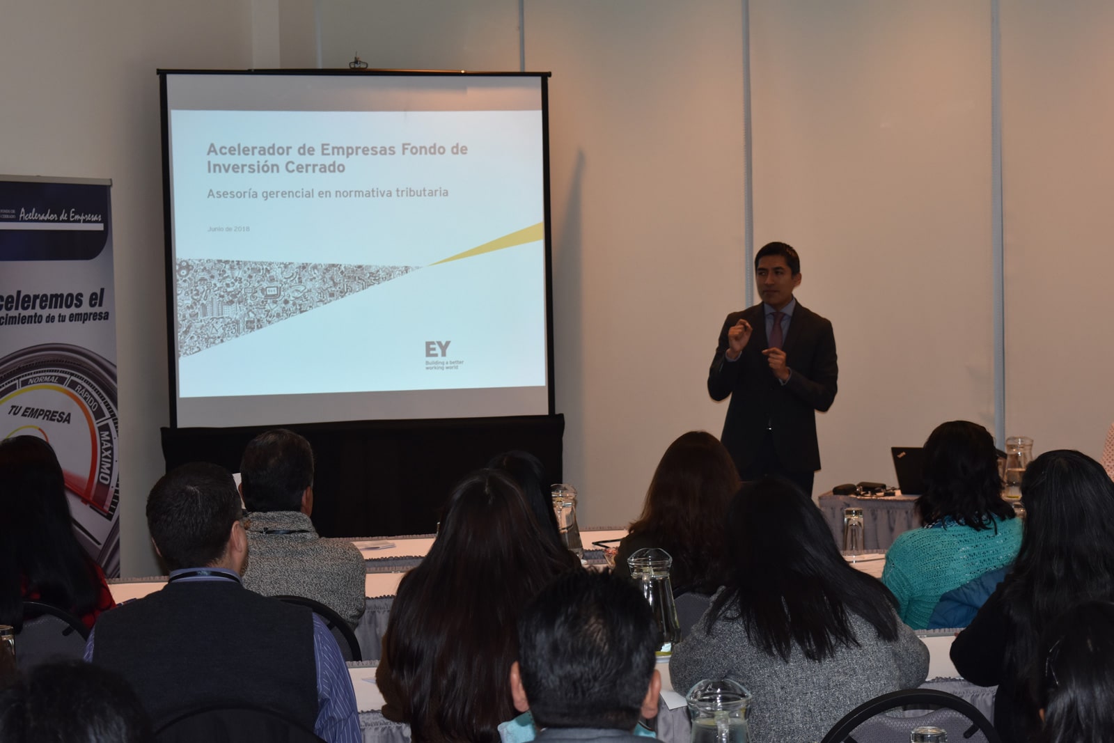 El taller estuvo a cargo de Juan Pablo Vargas y Ximena Enríquez, ambos especialistas en impuestos de la empresa Ernst & Young. La jornada se dividió en dos sesiones, en la primera se realizó una presentación del marco normativo, en el que, además se respondió las preguntas frecuentes de las empresas. En la segunda parte, con el objetivo de que las empresas participantes puedan aprovechar la presencia de los expertos, se abrió un espacio a preguntas más particulares.